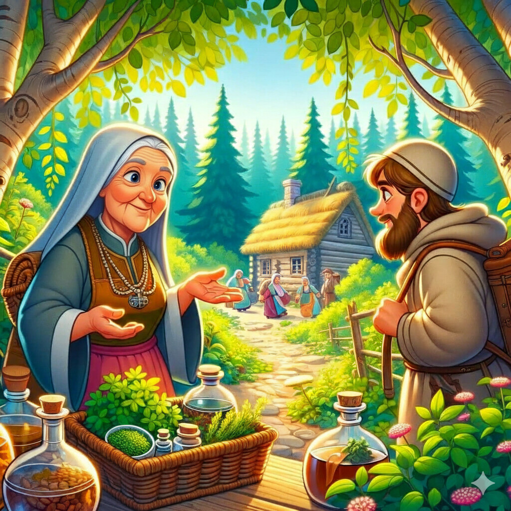 На влезот во едно село, некој патник наишол на старица што си собирала лековити билки.