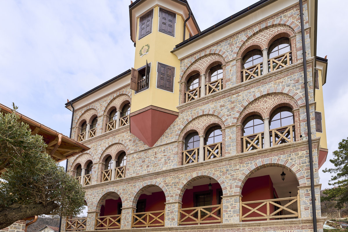 The residence was built on land which Elder Parthenius, with great labor and perseverance, gradually acquired for the needs of the monastery. It contains workrooms for the sisterhood, guest rooms, an abbess’s office, balconies, and other chambers—everything necessary for the daily life and mission of the monastic community. The conceptual design of the building and its appearance belongs to Jerondi himself, who, in collaboration with architects, structural engineers, and experts, succeeded in bringing forth this beautiful monastic edifice, one that does not violate the lines of the ancient monastic spirit, but continues them with reverence and good taste.