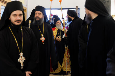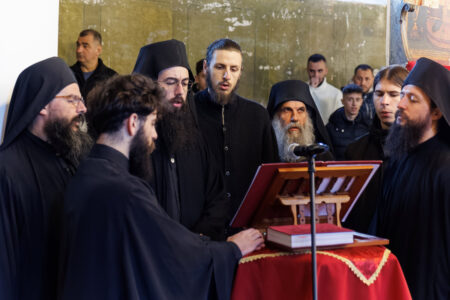 Jerondi ynë i nderuar kryesoi Misterin liturgjik të festës, dhe përveç vëllezërve klerikë nga Bigorski, bashkëmeshoi edhe prifti dibran at Mile Angelkovski. Himnet e gëzueshme liturgjike, të kënduara bukur nga kori “Mitropolit Kozma Preçistanski” nga Kërçova, u përzien me psherëtimat lutëse të turmës së madhe të të pranishmëve, të ardhur nga të gjitha anët e vendit. Dhe kur “Hosana” jehoi nën kupolat e këtij tempulli të lashtë, ajo nuk ishte vetëm kujtim i pritjes në Jerusalem të Mbretit të paqes, por një dëshmi e gjallë se Zoti Krisht edhe sot hyn, edhe sot vjen, edhe sot është ndër ne dhe me ne.