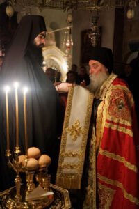 Sepse qëllimi i shërbesës së sotme nuk ishte vetëm festa e Palmave. Ishte edhe diçka më tepër: t’i bëjmë nder Hyjlindëses së Tërëshenjtë për këtë kishë të saj – monument me rëndësi të madhe historike dhe shpirtërore; t’u shprehim falënderim paraardhësve tanë dashamirës të Perëndisë, që me vetmohim të madh na lanë këtë trashëgimi të shenjtë; dhe të dëshmojmë se mundi i tyre nuk ka qenë i kotë, sepse edhe pas dy shekujsh, pasardhësit e tyre qëndrojnë në të njëjtin tempull, këndojnë të njëjtat himne dhe marrin pjesë në të njëjtin Krisht.