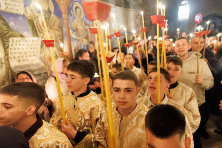 “Le të ngrihet Perëndia dhe të shpërndahen armiqtë e Tij!” Çdo varg i shoqëruar me “Krishti u ngjall së vdekurish” – përsëri dhe përsëri, pa u lodhur, me gëzim të shenjtë, sepse Pashka është pikërisht kjo: një “çmenduri” e shenjtë, një padurim i shenjtë i shpirtit që nuk mund të heshtë përpara Ngjalljes. “Kjo është dita që bëri Zoti: le të gëzohemi dhe të ngazëllehemi në të!” Dhe ne u gëzuam – jo me një gëzim të përmbajtur, por me një gëzim që derdhej, që shpërthente nga sytë, nga buzët dhe nga përqafimet: “Krishti u ngjall!” – “Me të vërtetë u ngjall!”