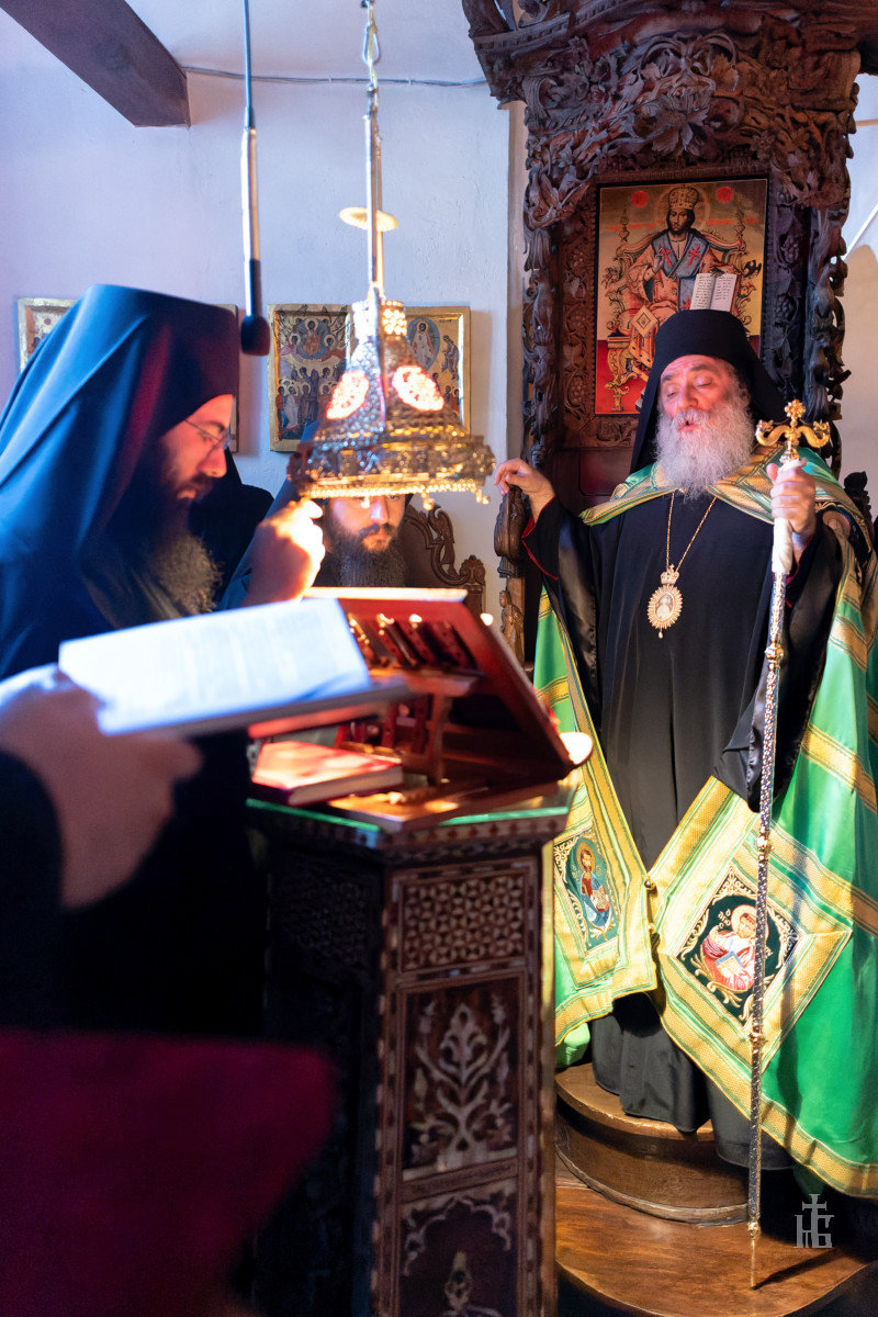 Следниот ден, на Божествената Евхаристија, Старецот повторно го тајноводеше народот Божји – собран како живо Тело, соборно, полно со дух и со вистина. Се воздигнавме, не со чувства, туку со вера, во самото таинство на јавувањето на Троичното Божество. Како што кажува стихирата: „Сè дарува Духот Свети: прави пророштва да извираат, свештеници усовршува, неписмени на мудрост научи, рибари како богослови покажа, ја составува целата уредба на Црквата…“