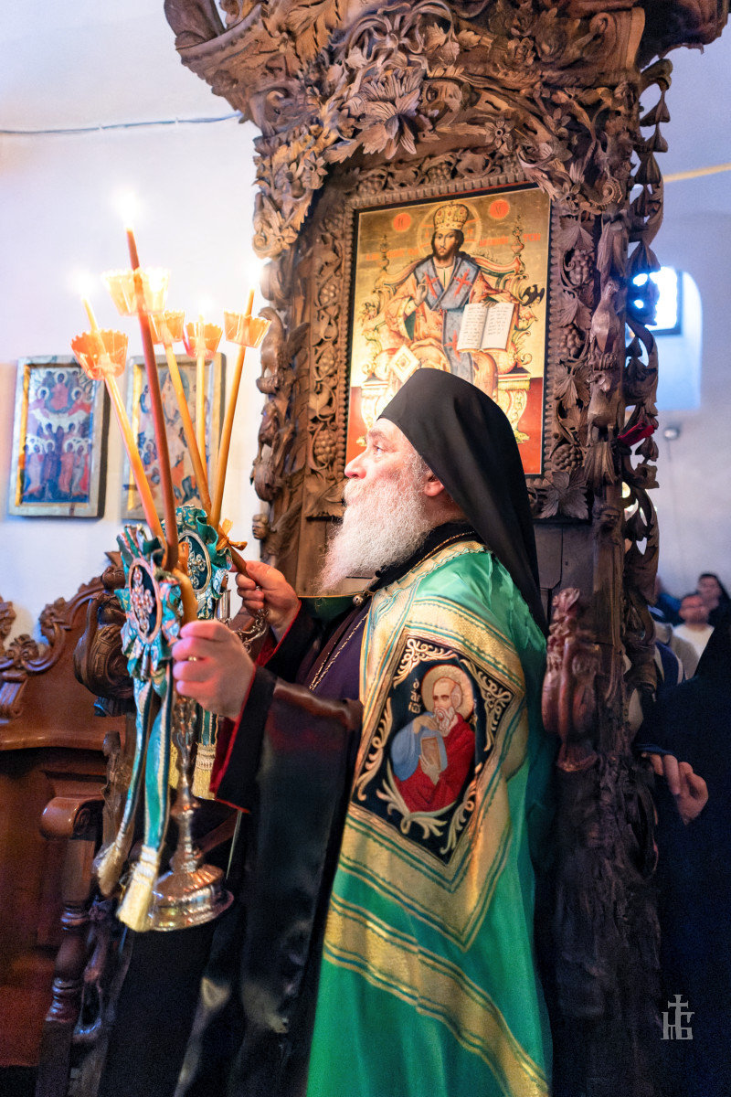 Сè започна со ноќното бдение, кога молитвената тишина се претвори во збор Божји. Старецот наш возљубен, Епископот Антаниски г. Партениј, како вистински молитвен патоказ, претстоеше на празничното ликување, од името на сите и за сите. Во темнината на светот, се јави „светлината на Утешителот, и светот го осветли.“