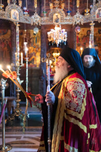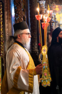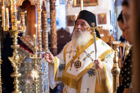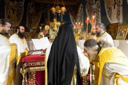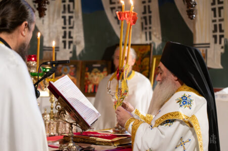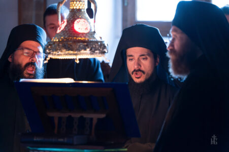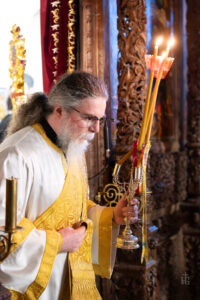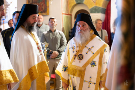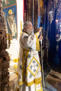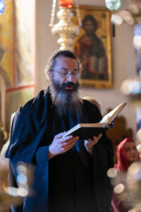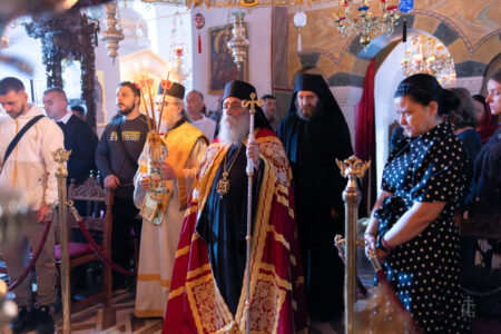 Во радоста на Воскресението и во светлината на Преображението Господово, вчера, во единаесеттата недела по Педесетница, нашиот возљубен старец, епископот Антаниски г. Партениј, отслужи Божествена Литургија во соборниот бигорски храм на Чесниот Претеча, во сослужение со браќата свештенослужители на Обителта. Голем број верници, дојдени одблизу и оддалеку, пристапија со побожност и благодарност на светото богослужение, за да се причестат со светите Христови Таинства и да ја споделат литургиската радост во ова благословено заедничарење во Христа.