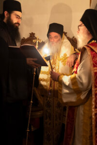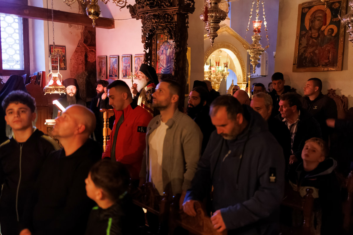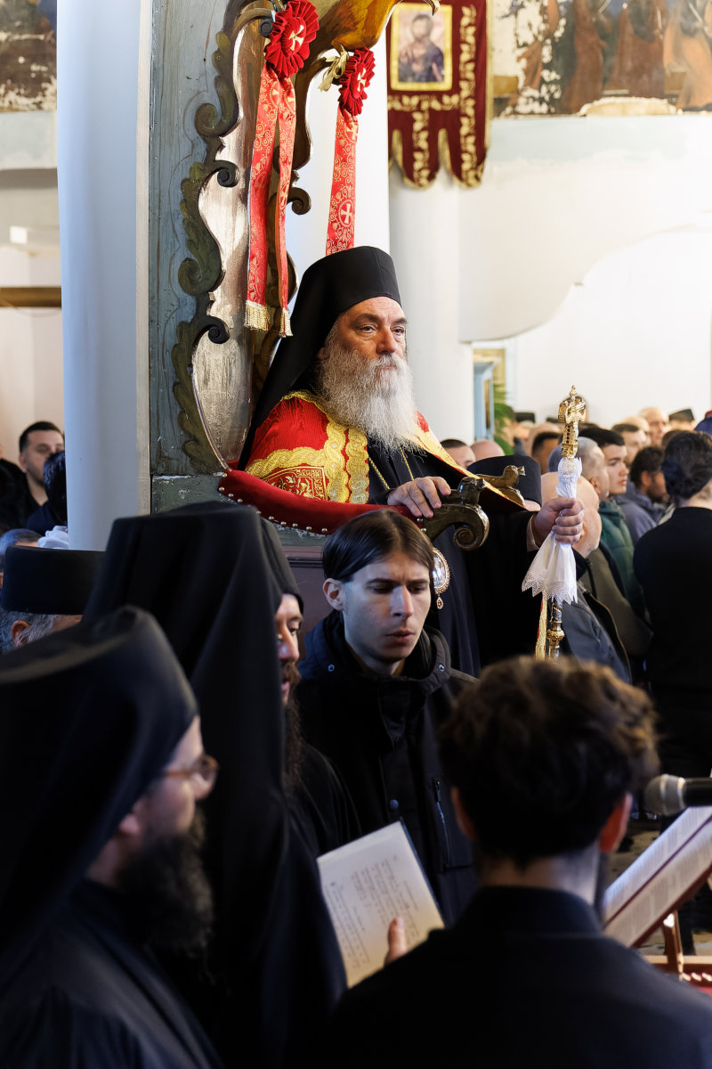 Нашиот почитуван Старец чиноначалствуваше со празничното литургиското таинство, а освен браќата свештенослужители од Бигорски, нему му сослужуваше и дебарскиот свештеник отец Миле Ангелковски. Радосните литургиски химни, прекрасно испеани од хорот „Митрополит Козма Пречистански“ од Кичево, се мешаа со молитвените воздишки на множеството присутни, дојдени од сите страни на нашата земја. И кога „Осана“ одекна под сводовите на овој древен храм, тоа не беше само спомен на ерусалимскиот пречек на Царот на мирот, туку беше и една автентична исповед на верата дека Господ Христос и денес влегува, и денес доаѓа, и денес е меѓу нас и со нас.