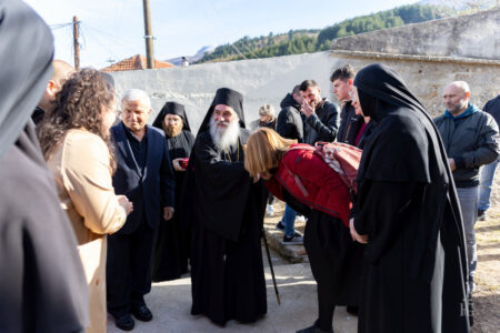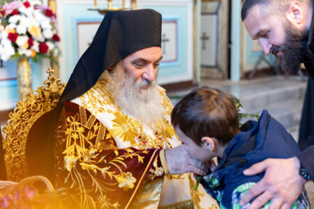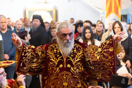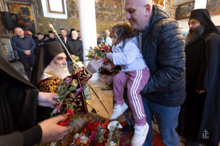 Годинешните, пак, кумови, Елена и Сашко Станковиќ, му подарија зографисана икона од празникот Цветници, и со топли зборови му се заблагодарија за неговата татковска грижа со која постојано бдее над сите нас.