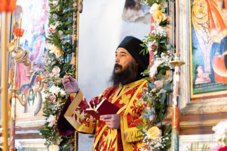 Торжеството во Дебар беше токму такво – празник на победата. Или поточно, предворје на победата. Радосните литургиски химни, прекрасно испеани од хорот „Митрополит Козма Пречистански“, се мешаа со молитвените воздишки на множеството присутни, дојдени од сите страни на нашата земја. Нашиот сакан Старец, Епископот Антаниски г. Партениј, чиноначалствуваше со литургиското таинство, а освен браќата свештенослужители од Бигорски, нему му сослужуваа и почитуваниот дебарски свештеник о. Миле Ангелковски, како и нашиот драг пријател, јероѓаконот Хризостом од Света Гора. Особено трогателни беа солзите радосници во очите на домородните дебрани, како сведоштво за силната надеж, дека токму во овој прекрасен храм на Богомајката славословијата никогаш нема да замолкнат. Секоја уста, секое срце, како да ја повторуваше древната песна: „Осана! Благословен е Оној Кој доаѓа!“ – со сè подлабока вера дека ова славно и велелепно здание ќе ја достигне својата конечна убавина и слава.