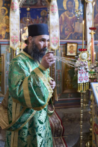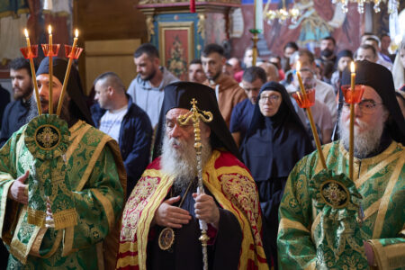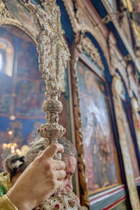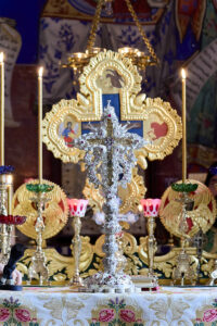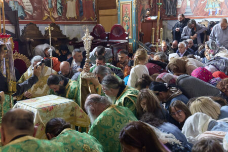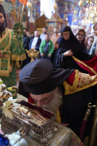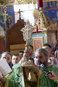 По великото славословие на утрената богослужба, среде храмот победоносно беше издигнат Чесниот Крст, облеан со светлина и со молитвен трепет. Со умиление и благоговение, верните пристапуваа кон светото знамение на нашата победа, преклонувајќи колена и исповедајќи ја својата вера во распнатиот и воскреснат Господ. И додека траеше чинот на поклонение на Крстот, нашиот сакан старец, епископот Антаниски г. Партениј, со татковска љубов им делеше на сите украсени гранчиња од босилек – симбол на новиот живот и благодатта што изобилно извира од Крстот Христов.