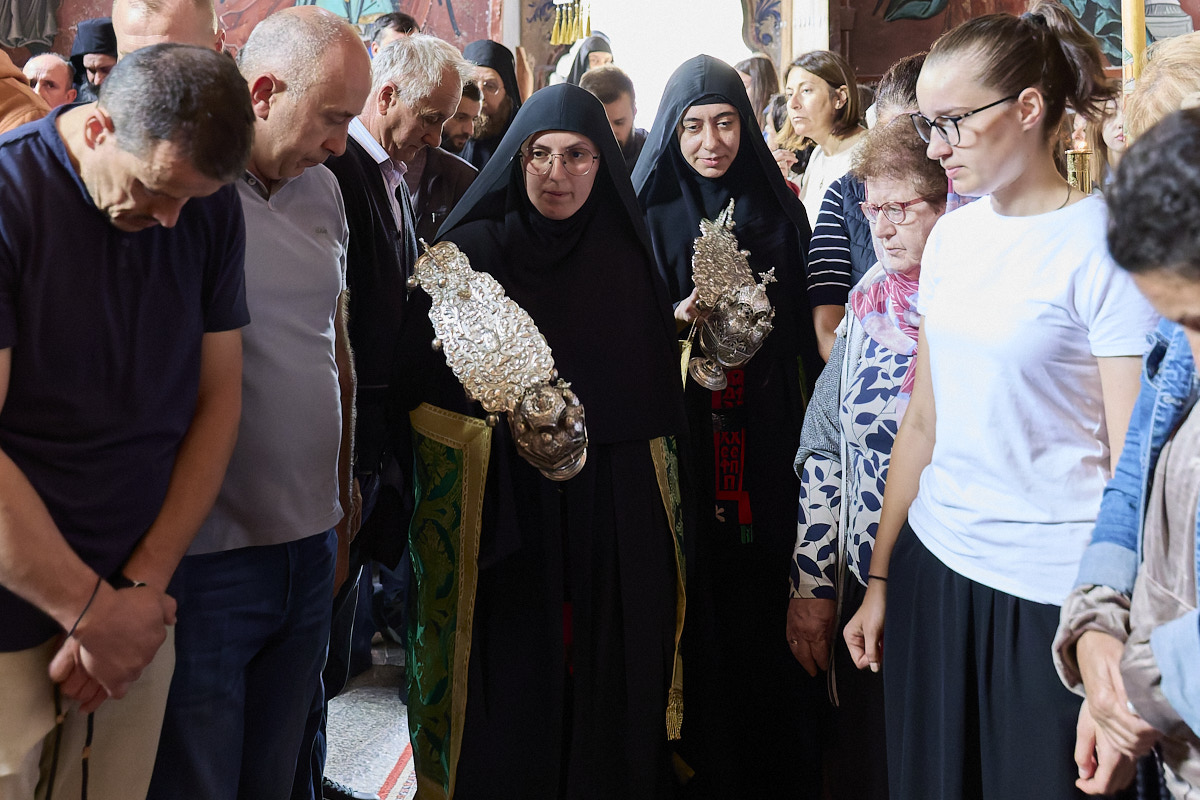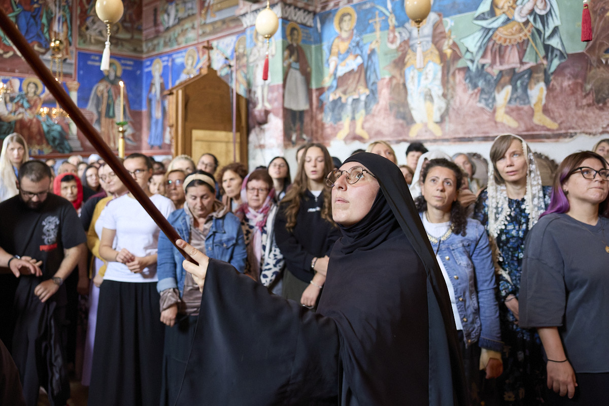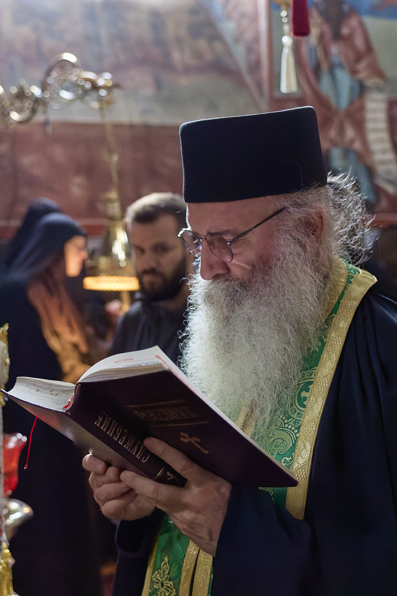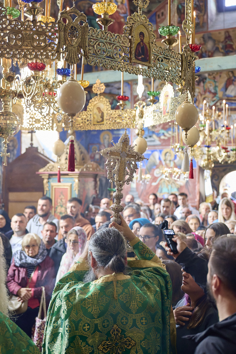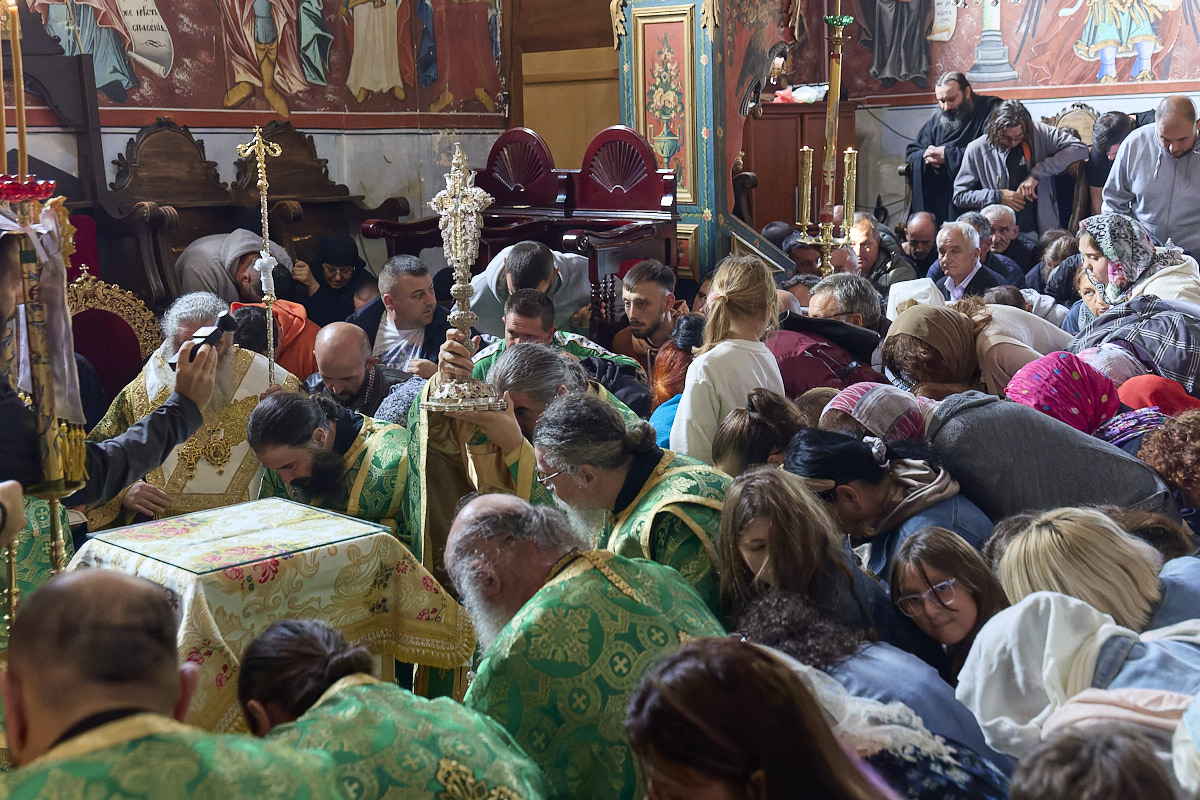 По великото славословие на утрената богослужба, среде храмот победоносно беше издигнат Чесниот Крст, облеан со светлина и со молитвен трепет. Со умиление и благоговение, верните пристапуваа кон светото знамение на нашата победа, преклонувајќи колена и исповедајќи ја својата вера во распнатиот и воскреснат Господ. И додека траеше чинот на поклонение на Крстот, нашиот сакан старец, епископот Антаниски г. Партениј, со татковска љубов им делеше на сите украсени гранчиња од босилек – симбол на новиот живот и благодатта што изобилно извира од Крстот Христов.