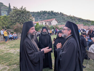 Вчеравечер, во храмот преисполнет со верници и со мироточива тишина и свеченост, се отслужи сеноќно бдение на кое молитвено претстоеше Високопреосвештениот Митрополит Амантиски г. Натанил. Меѓу множеството собрани молитвеници, со благослов на нашиот Старец, Епископот Антаниски г. Партениј, беа и нашите браќа, архимандритите Доситеј и Кирил, монахот Филип, како и сестрите Екатерина и Христина од Рајчица, кои со своето присуство донесоа благослов и духовна радост од нашите обители.