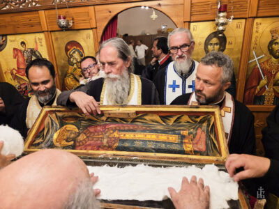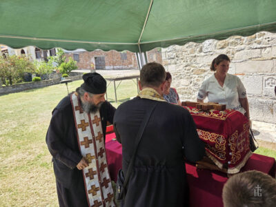 По Литургијата, се изврши торжествена литија околу светиот храм, со кивотот на моштите на Свети Јован Владимир, во која чест беа удостоени да учествуваат и нашите отци Доситеј и Кирил, носејќи го светиот кивот и чесните мошти – како сведоштво за живата врска со светиите, како благослов за верност и тивко исповедништво.