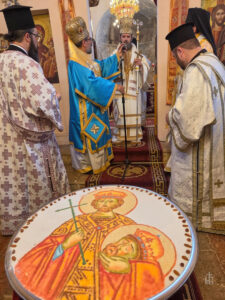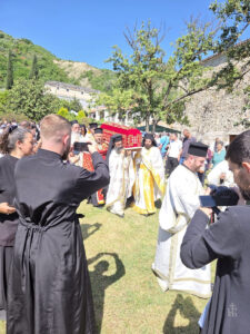 Утрово, пак, во средоточието на манастирската слава, се отслужи Божествена Литургија, на која чиноначалствуваше Архиепископот на Тирана и цела Албанија, г. г. Јован, во сослужение со Митрополитот Елбасански г. Антониј и Епископот на Круја г. Анастасиј, а со нив и бројно свештенство од Албанија, Италија, Црна Гора и Македонија. Посебна благодат се излеа на ова евхаристиско таинство преку заедничарењето во единствените Тело и Крв Христови, низ кое се оствари не само празнично единство, туку и онаа длабока духовна врска што ја поврзува Црквата како тело на љубовта, над сите јазици, земји и нации.