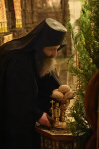 По завршувањето на светата Литургија, во духот на традицијата, Старецот ја благослови и ја подели Василопитата, како спомен на големото милосрдие и татковската грижа на свети Василиј Велики кон народот Божји. Овој благословен чин беше проследен со радост, благодарност и молитвена надеж дека и во текот на новата година Господ ќе ја излева Својата милост врз сите.