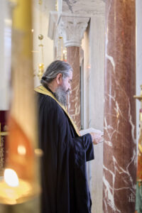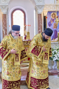 Денес, на самиот ден на празникот, кога беше повторно воспевано духовното раѓање на народите во Христовото име, се отслужи Утрена и Божествена Литургија со којашто чиноначалствуваше владиката г. Партениј. Освен бигорските свештенослужители, на наша голема радост, во литургиското таинство сослужуваа и: благочестивиот свештеник о. Миле Ангелковски од Дебар и благоговејните презвитери Василиј и Михаил од Православната црква на Чешките земји и на Словачка, односно од благословената моравска земја, каде што некогаш учителствувале и проповедале Светите Учители. Тоа беше Евхаристија што непосредно ги поврзуваше земните со небесните. Преку неа повторно и повторно се откри смислата на подвигот на Светите Рамноапостоли: дека човекот станува светлина само кога е просветлен од Словото, дека културата станува корисна и спасителна само кога извира од Крстот.