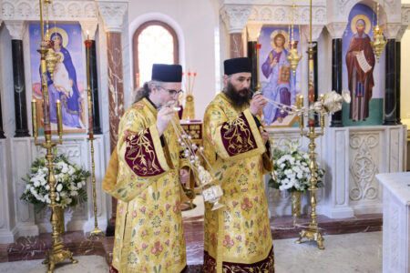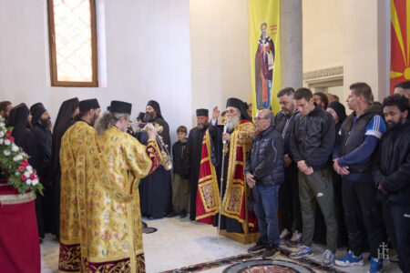 Во навечерието на споменот, кога сончевата светлина почнува да му отстапува место на молитвената задлабоченост, се одржа празнична Вечерна богослужба, на којашто молитвено претстоеше Неговото Преосвештенство, епископот Антаниски г. Партениј – пастирот, чиешто срце е отворено како древен псалтир за восфаление Божјо и чијашто љубов кон Светите Браќа е неизбришливо впишана во ѕидовите на овој свештен скит.