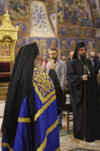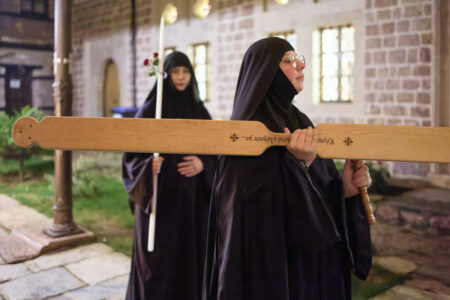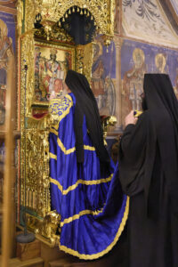 Затоа ни малку не е чудно тоа што Пречистанскиот манастир на Богомајката одново се украси со множество верни, кои дојдоа да ја прослават тајната на Божјата промисла, којашто на денешен ден, како тригодишно дете ја внесе во Светињата на светињите. Уште на вечерната богослужба чудесно составените стихири нѐ внесоа во тоа големо таинство и на еден неискажлив начин ја отворија пред очите на присутните глетката на малечката Марија, која водена од првосвештеникот Захарија влегува во Светињата за да се подготви да стане жив храм на Севишниот.