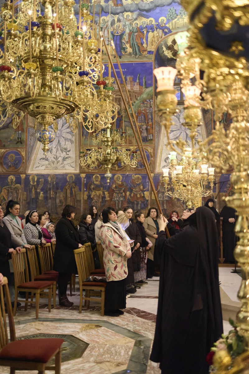 Затоа ни малку не е чудно тоа што Пречистанскиот манастир на Богомајката одново се украси со множество верни, кои дојдоа да ја прослават тајната на Божјата промисла, којашто на денешен ден, како тригодишно дете ја внесе во Светињата на светињите. Уште на вечерната богослужба чудесно составените стихири нѐ внесоа во тоа големо таинство и на еден неискажлив начин ја отворија пред очите на присутните глетката на малечката Марија, која водена од првосвештеникот Захарија влегува во Светињата за да се подготви да стане жив храм на Севишниот.