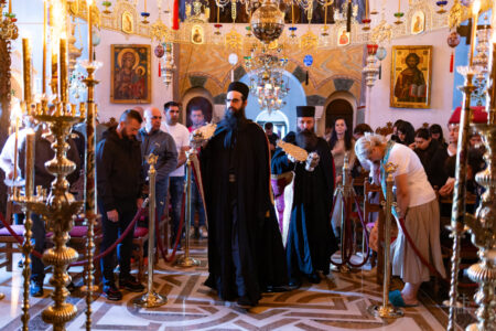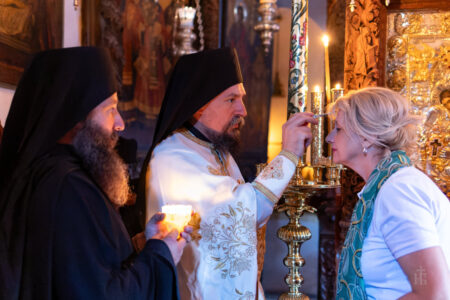 Божествената Литургија утрово беше венец на севкупното торжество. Со молитвено и благодарствено стоење пред Бога, браќата монаси и собраниот верен народ се причестија од светите Христови Тајни и ја вкусија благодатната сладост на преобразувачката светлост.