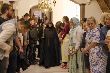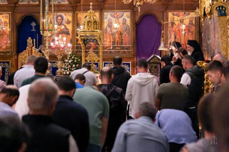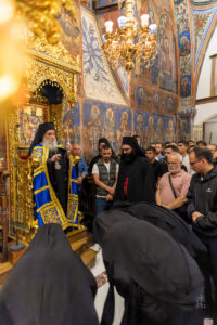 Примете, татко наш, еден симболичен спомен за ова прво сеноќно бдение во Обителта на Богомајката Пречиста на празникот на нејзиното преславно Успение – еден прекрасен и тежок крст со кој ќе нè благословувате од тука во вечноста!