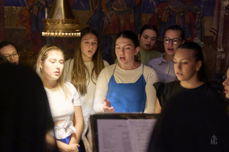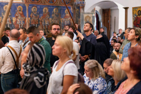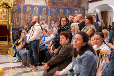 Огромниот број верни од сите возрасти што го исполнија храмот, со едно срце и една уста, и со синовска љубов кон Мајката на Животот ги пееја Успенските статии. Големиот, пак, број монаси, монахињи и свештенослужители, собрани околу својот старец, епископот Антаниски г. Партениј, од длабочините на своите срца излеваа топли прозби пред раскошниот Богородичен одар, тивко молејќи ја да испрати обилен благослов врз целиот свет. Посебен духовен раскош на бдението му дадоа монасите и членовите на хорот „Митрополит Козма Пречистански“, кои пееја навистина неуморно и велелепно, достојно за Мајката Божја и за наслада на сите присутни.