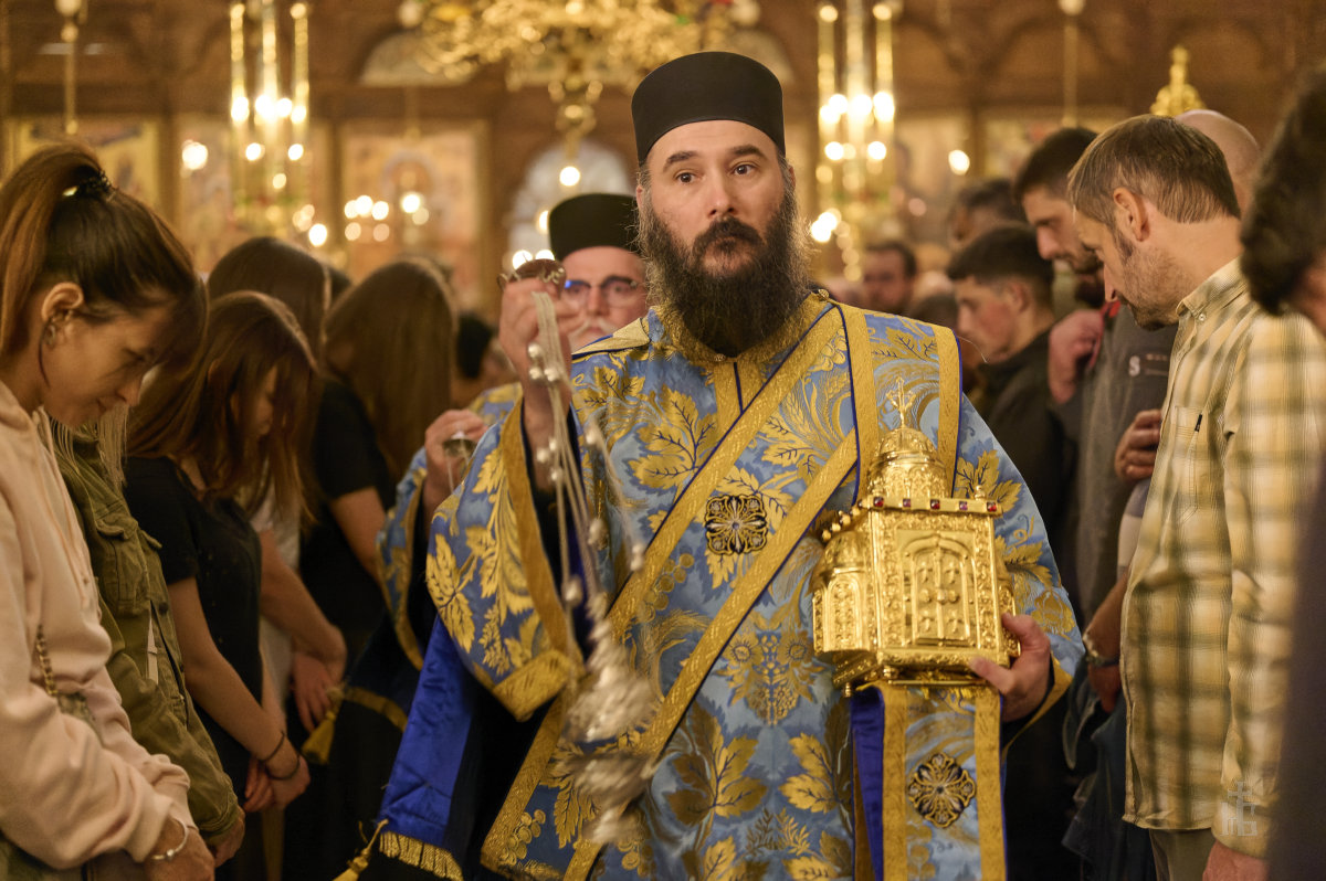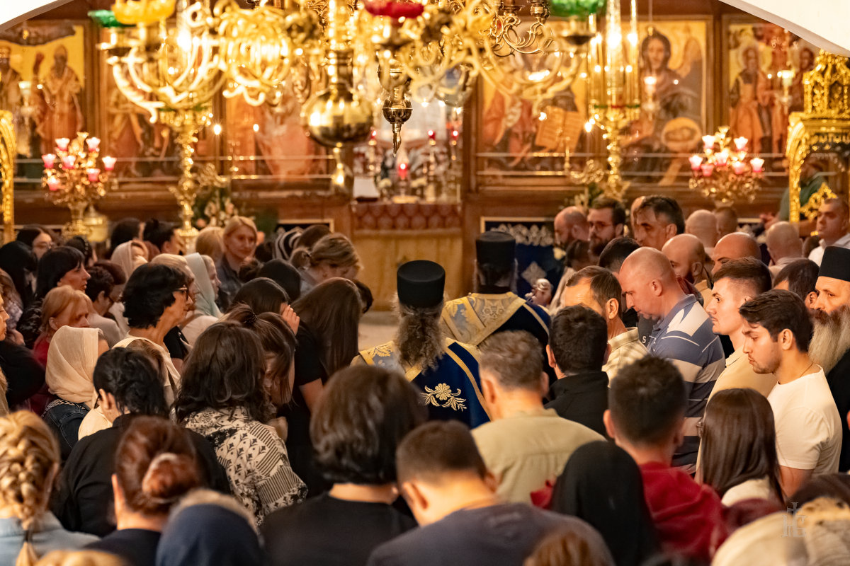 Примете, татко наш, еден симболичен спомен за ова прво сеноќно бдение во Обителта на Богомајката Пречиста на празникот на нејзиното преславно Успение – еден прекрасен и тежок крст со кој ќе нè благословувате од тука во вечноста!