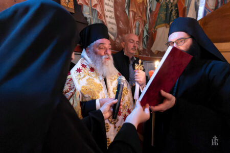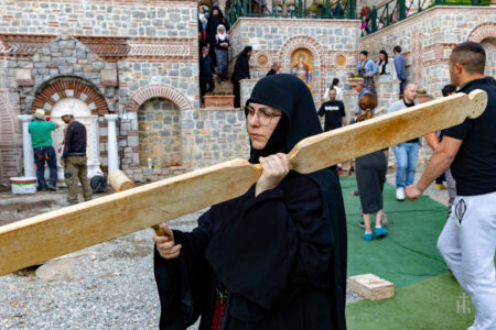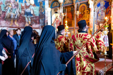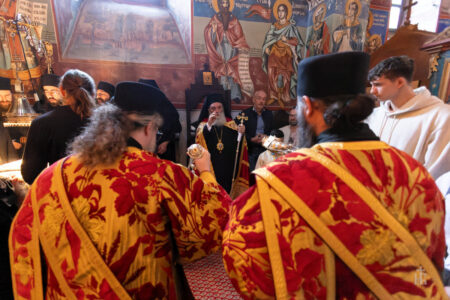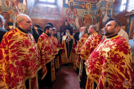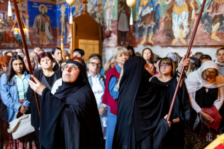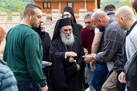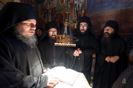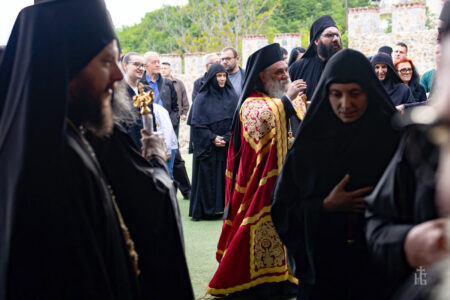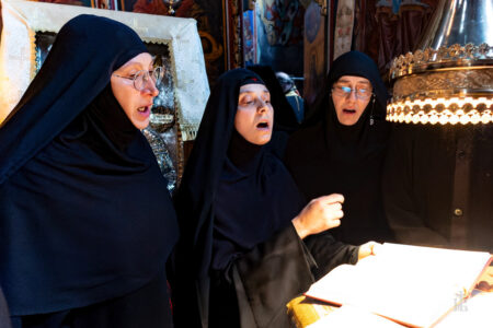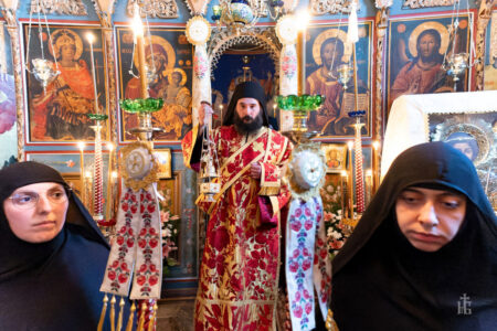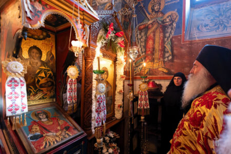 Химните на љубов кон светиот Великомаченик и на верата во Христа Воскреснатиот одекнуваа во убавината на манастирскиот храм, каде што се собра множество верници, за да ја споделат радоста и благодарноста и да се насладуваат со духовните плодови на празникот. На крајот од Вечерната, светителољубивиот Старец со пастирска грижа и татковска ревност се обрати со пригодна беседа, потсетувајќи нè на примерот на Свети Георгиј како на патоказ кон Христовата љубов, заедништво и обожение.