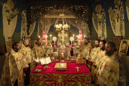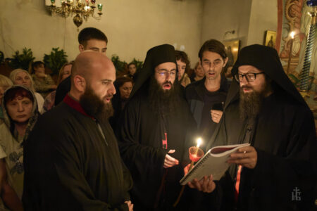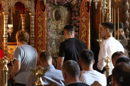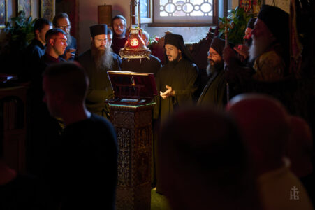 Со молитвено благоговение и со благодарствено славословење, изминатото ноќоденство Бигорската свештена обител ја чествуваше својата главна манастирска слава – споменот на отсекувањето на чесната глава на нашиот преславен покровител, свети Јован Претеча и Крстител Господов. Секое име на светија во Црквата е благослов, но името на великиот и свештен Претеча е како силен оган што го осветлува и најтемниот агол од човечкото срце. Оној кој беше „глас што вика во пустината“, кој со својата бескомпромисна вера и правдољубие, и со своето ангелско смирение ги израмни патеките во срцата човечки за Спасителот на светот, за нас е најголемиот учител во покајанието, во смирението и во љубовта кон натсуштествената Убавина.