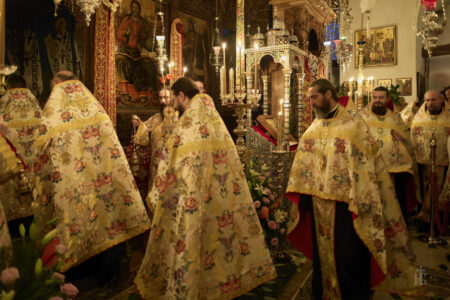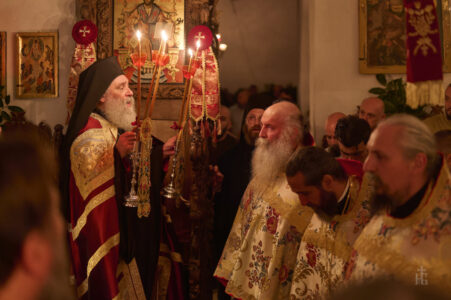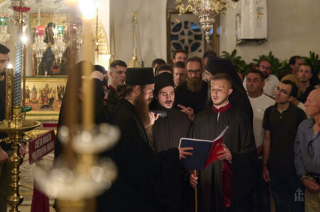 Со најсилна љубов кон нашиот небесен заштитник, братството и множество верен народ се собраа вчеравечер во сечесниот Претечев храм, за да му ја принесат вечерната молитва и благодарност на „најголемиот меѓу родените од жена“. Собрани околу својот сакан старец, епископот Антаниски г. Партениј, кој претстоеше на вечерното богослужение, монасите, монахињите и недобројните верници, сотворија молитвена симфонија што се возвишуваше кон небесните предели, кон обиталиштето на божествениот Претеча, умолувајќи го да се застапува за душите наши. Дедо Партениј, пак, во својата вдахновена беседа ги упати сите кон тајната на подвигот и жртвата на Крстителот, нагласувајќи дека секое вистинско христијанско срце е повикано да ја живее истата ревност и пламен за Христа.