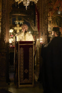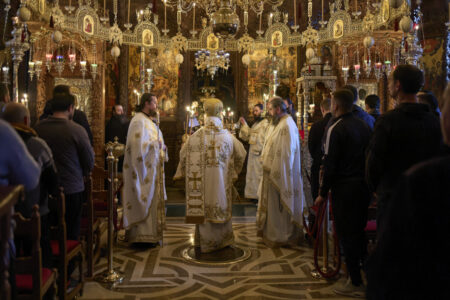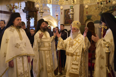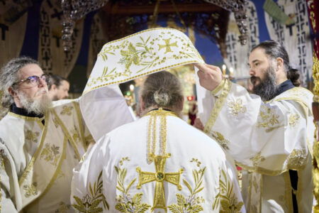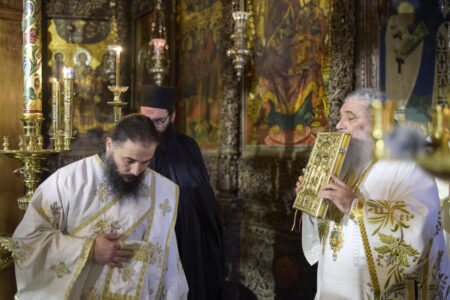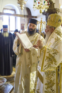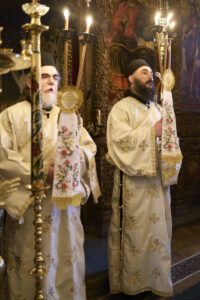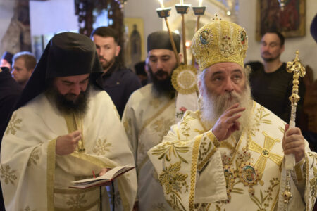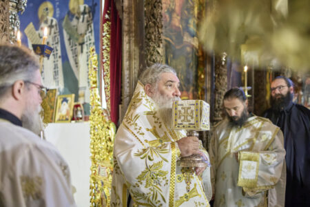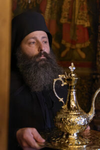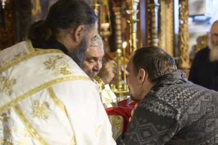 Денеска, во тивката возвишеност на празникот, со светата Евхаристија тајноводеше нашиот возљубен старец, преосвештениот епископ Антаниски г. Партениј. Во присуството на браќата монаси и на притекнатите верници, Божествената Литургија стана духовен заслон, спокој и светлина што го осветлува срцето, мир што го надминува секој земен страв. По читањето на светото Евангелие, Старецот г. Партениј изговори вдахновено и проникливо слово за невидливата, но силна закрила на небесните сили и за потребата човекот секојдневно да учествува во таа ангелска борба преку молитва, трпение и љубов.