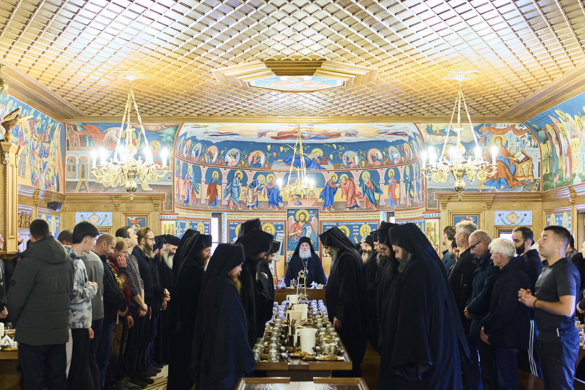 Денеска, во тивката возвишеност на празникот, со светата Евхаристија тајноводеше нашиот возљубен старец, преосвештениот епископ Антаниски г. Партениј. Во присуството на браќата монаси и на притекнатите верници, Божествената Литургија стана духовен заслон, спокој и светлина што го осветлува срцето, мир што го надминува секој земен страв. По читањето на светото Евангелие, Старецот г. Партениј изговори вдахновено и проникливо слово за невидливата, но силна закрила на небесните сили и за потребата човекот секојдневно да учествува во таа ангелска борба преку молитва, трпение и љубов.