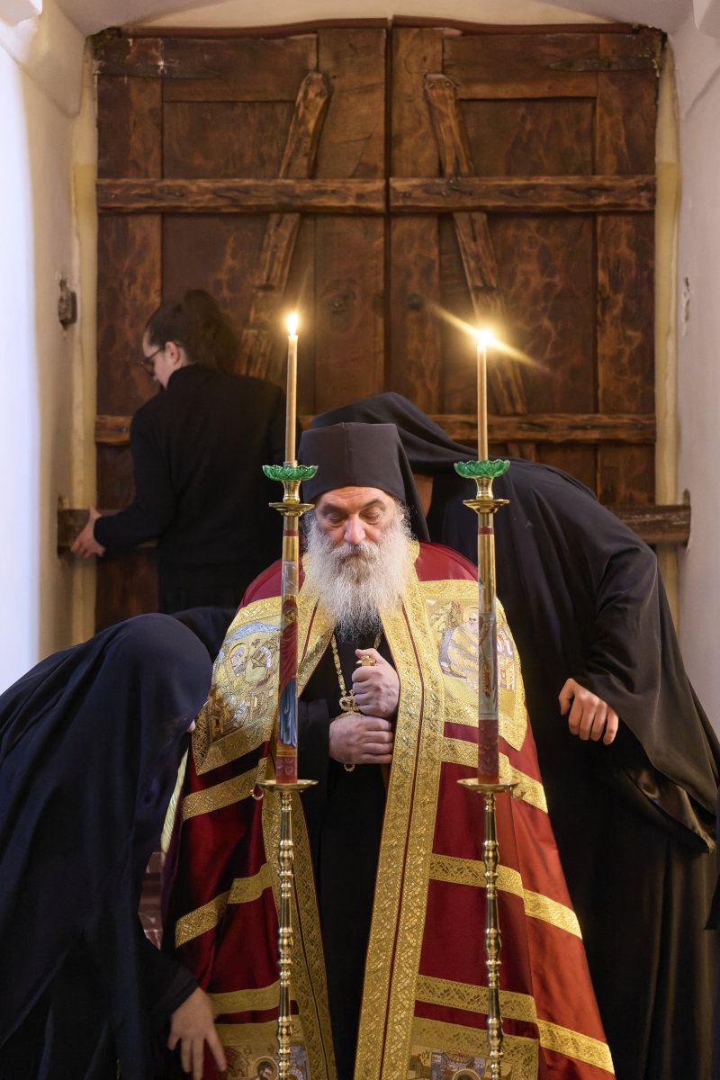 Во умилителната атмосфера на свештената обител на Пресвета Богородица – Пречиста крај Кичево, нашата монашка заедница го прослави главното празнично торжество на Сретението Господово. Таму, со света Божествена Евхаристија денеска чиноначалствуваше нашиот почитуван старец, епископот Антаниски г. Партениј, во сослужение со браќата свештенослужители, принесувајќи ја бескрвната Жртва за живот на светот. Под пречистанските сводови на уникатниот живопис, каде што небесната Литургија се слева со земната, и Пошироката од небесата ги прегрнува сите, множеството притекнати верници со срдечен трепет ја доживуваа тајната на Сретението: Богомладенецот принесен во храмот и прегрнат од праведниот Симеон, како образ на секој човек кој со вера и љубов Го прима Христа во своето срце.