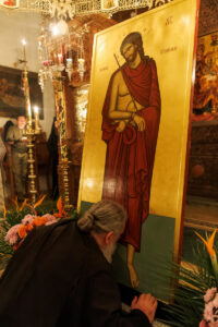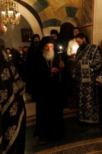 Ете сега, во тишината на оваа Велика седмица, нашите монашки Обители треперат пред судот над бесплодната смоковница и плачат пред ликот на прекрасниот и кроток Јосиф, кој не престана да дава плодови ниту во ропството, ниту во затворот, зашто во неговото срце немаше место за одмазда, туку само за простување. Јосиф е жив прекор за секое наше бесплодие: неговата чистота ја разобличува нашата нечистотија, неговото трпение го посрамува нашето роптање, а неговата кротост ја победува нашата гордост. И во неговиот образ веќе Го наѕираме Самиот Христос: нашите очи го гледаат ликот на Младоженецот, Кој нè потсетува дека како што Јосиф беше предаден од своите браќа и фрлен во мрачната јама на заборавот, така и Он доброволно зачекори кон предавството и страдањата приредени од Неговите соплеменици.
