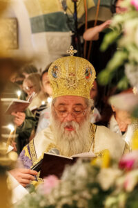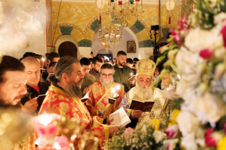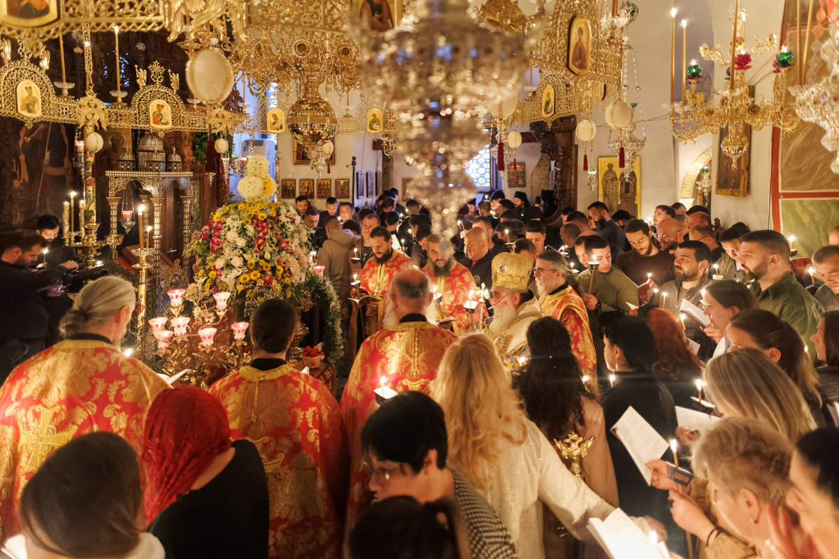 На вчерашното великопеточно бдение, собрани околу Кувуклијата со светата Плаштаница, нашиот возљубен Старец, преосвештениот епископ Антаниски г. Партениј, го предводеше црковното собрание при радостотворното оплакување на Христа. Зашто тоа оплакување навистина твори и носи радост. Тоа не е погреб, ами предвечерие на Воскресението. Погребните стихови на се најубавата поезија на христијанскиот свет, песни во кои тагата и надежта се неразделни како крв и вода од прободеното Спасителово ребро: „Животе, во гроб Те положија, Христе! Ангелските воинства се ужаснаа и ја прославија Твојата снисходливост.“ Животе – со голема буква. Зашто Оној Кој лежи во гробот не е мртовец; Он е Самиот Живот. И ангелите не плачат, тие се ужасуваат со восхит од длабочината на Божјата љубов која стигна дотаму, до самото дно на смртта, за да нè извлече нас, смртно разболените.