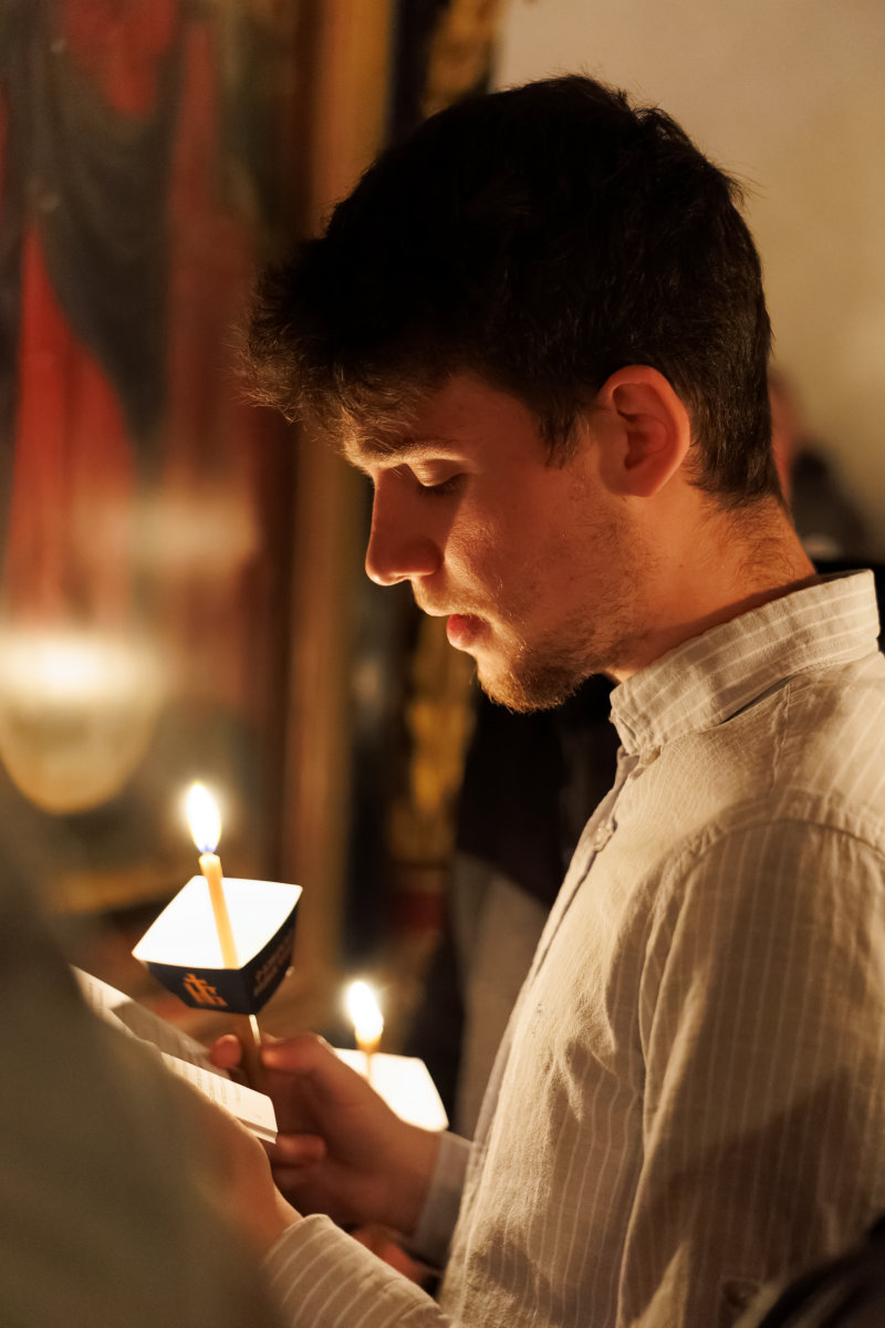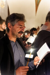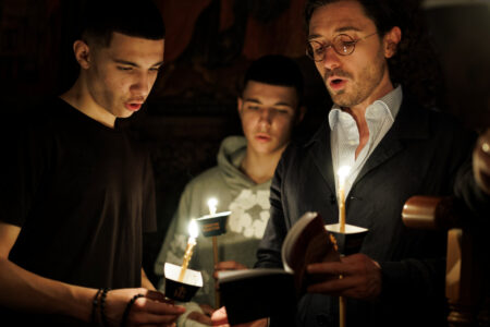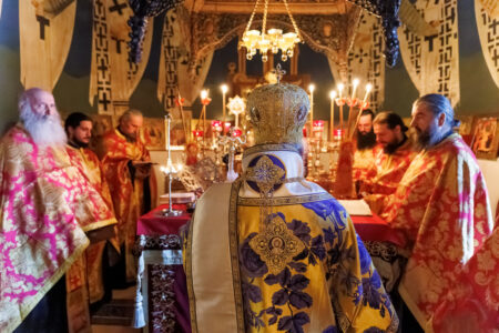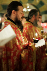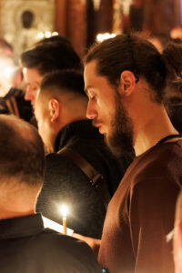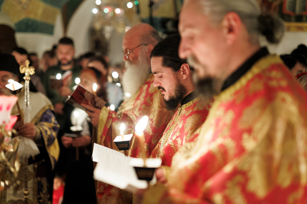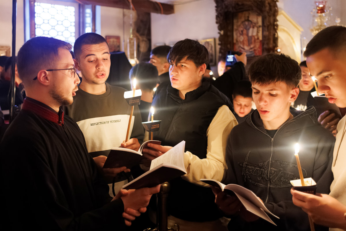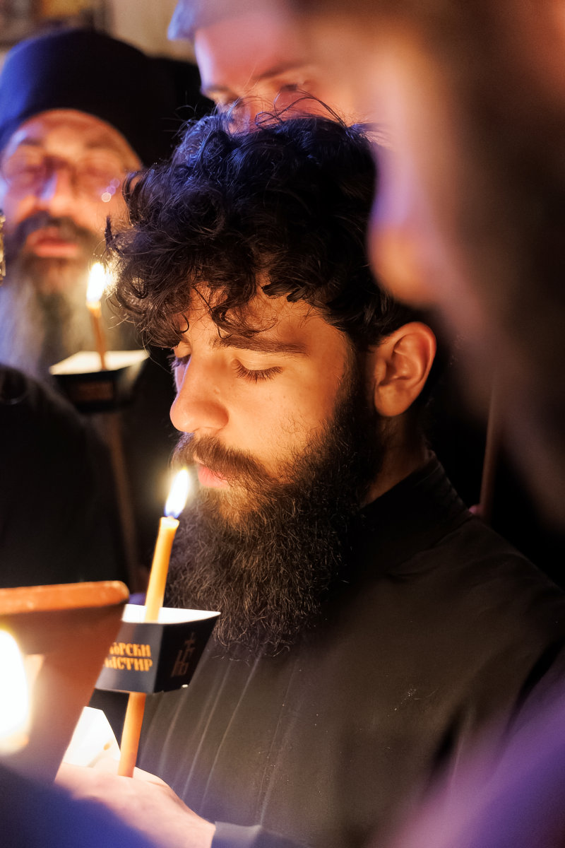 И тој ден веќе е тука: денес, на Василиевата Литургија, кога среде храмот одекна гласот на Старецот со псаломскиот победнички восклик: „Воскресни, Боже, суди ѝ на земјата“; и кога тие зборови ги разнесоа ѕидовите на Бигорскиот храм, и кога сѐ во храмот се облече во светлина, и кога наместо „Херувимската песна„ се запеа „Да молчи секоја плот човечка“ – во тој миг, Велика Сабота престана да биде ден на чекање и стана ден на предвкусување. Ние веќе знаеме. Веќе чувствуваме. Пасхата Господова е тука – не уште видлива, но веќе присутна, како зората пред изгрејсонцето, како мирисот на пролетта пред првиот цвет.