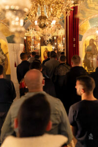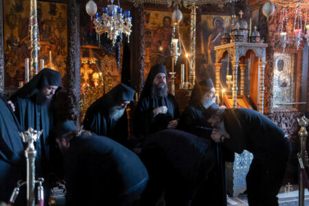 Но претходно, според востановената богослужбена практика, уште еднаш да се погледнеме во очи со ближниот, да побараме прошка еден од друг и, така измирени, да тргнеме по Оној Кој ни заповеда да го љубиме другиот повеќе од себеси. А нашиот возљубен Старец, кој во сè ни е пример – во трпение, смиреност и пожртвувана љубов – и овој пат прв ни го покажа патот кон меѓусебното проштевање, смирено барајќи прошка и проштевајќи ги нашите бројни прегрешенија: