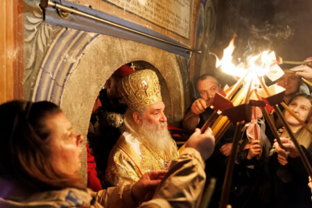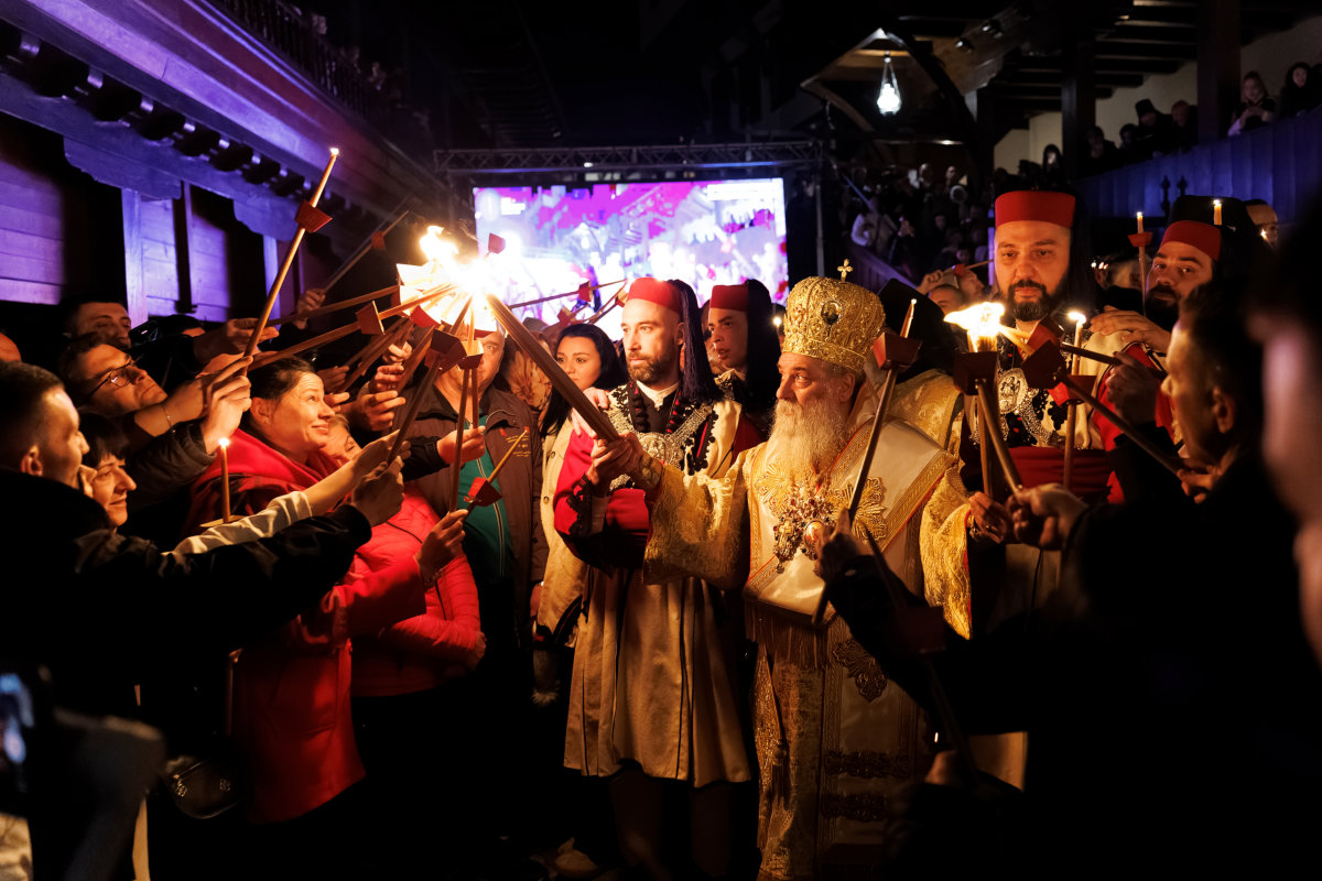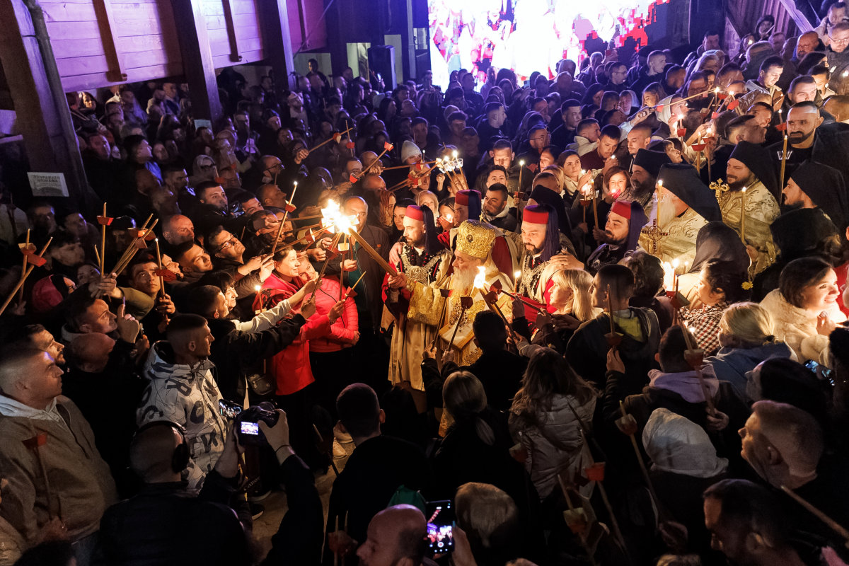 И ете, оваа ноќ Бигорскиот засветли со светлината на Невечерниот Ден. Не со електрична светлост, не со рефлектори, туку со оној древен, таинствен, нестварен сјај што го носи секоја пасхална ламбада запалена со Благодатниот Оган од Ерусалим, што и оваа година, по благословот на нашиот возљубен Старец, епископот Антаниски г. Партениј, пристигна во нашата Обител. Светлина од Светлината, Оган од Огнот, Христос од Отецот. И кога Старецот излезе како моќен гласник на Божественото Воскресение пред недогледните множества верни, и кога неговиот победозвучен глас – тој глас што четириесет дена пееше покајничките тропари и изговараше умилителни утехи и слова – за прв пат по долгиот пост изговори: „Слава на Светата, Единосуштна, Животворна и Неразделна Троица“ – во тој миг, ноќта престана да биде ноќ.