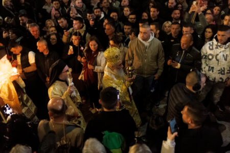 „Нека воскресне Бог и нека се распрснат непријателите Негови!“ Секој стих проследен со „Христос воскресе од мртвите“ – пак и повторно, неуморно, весело, лудо-радосно, зашто Пасхата е токму тоа, света лудост, света нетрпеливост на душата која не може да замолчи пред глетката на Воскресението. „Овој е денот, што го сотвори Господ: да се возрадуваме и возвеселиме во него“ И ние се радувавме. Не со умерена, надворешна радост, туку со радост која се прелива, која не можеше да се сопре, која се лее од очите и од усните и од прегратките со кои се поздравуваме: „Христос воскресе!“ – „Вистина воскресе!“