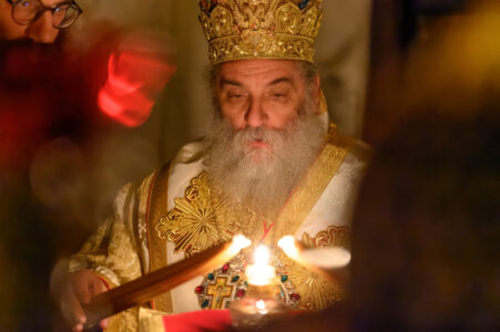 Нашиот сакан владика чиноначалствуваше со Пасхалното таинство со поглед преобразен од Воскресението; поглед на човек кој не само што верува, туку гледа и допира. И кога возгласуваше „Христос воскресе“, и кога глаголеше неговата уста, неговиот глас беше глас на сведок кој сведочи за она што го видел со очите на душата. Зашто тоа е Старецот за нас: сведок на Воскресението.