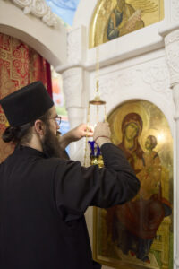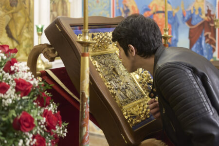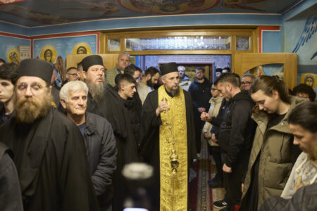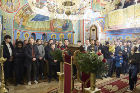 И беше навистина добро што, по Божја промисла, тоа се случи токму тука, среде мајки и татковци, баби и деца, работници и ученици, зашто третата статија на Акатистот е имено за тоа: за Бога Кој слегува меѓу луѓето. За Словото Кое „цело беше при долните, од горните никако не отстапувајќи.“
