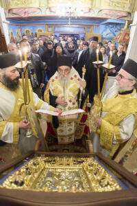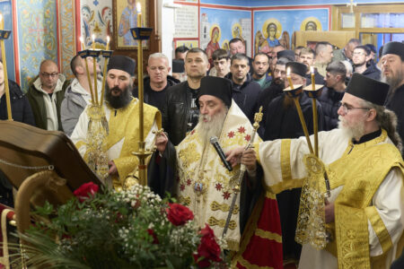 На крајот од Повечерието, владиката дедо Партениј им се обрати на присутните со вдахновено слово за Царицата Мајка, за нејзината неуморна грижа кон секој кој во молитва ја призива, за нејзиниот покров кој не познава граници, и за тоа дека токму среде Великиот пост, кога душата е најчувствителна, Богородица е најблиску.