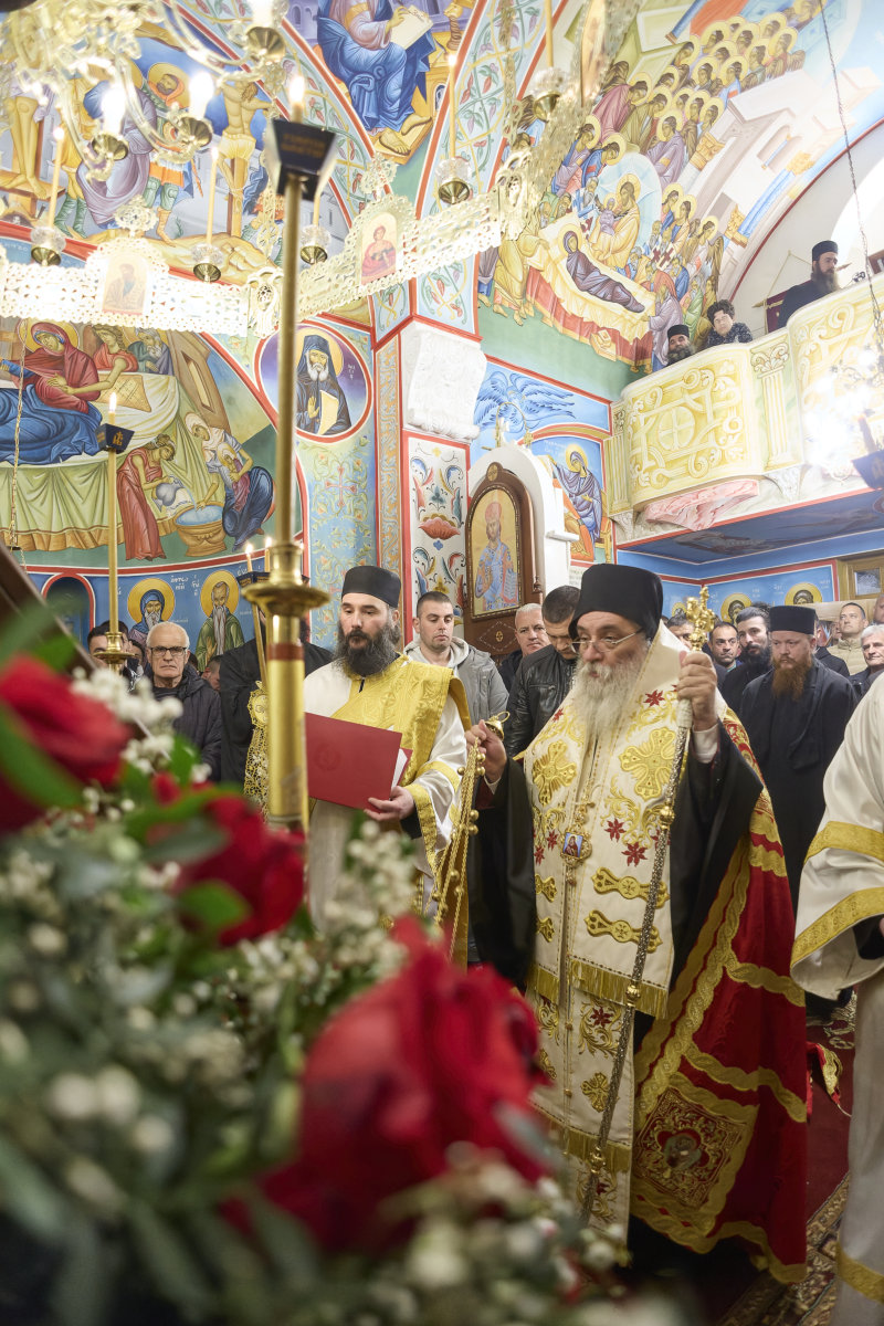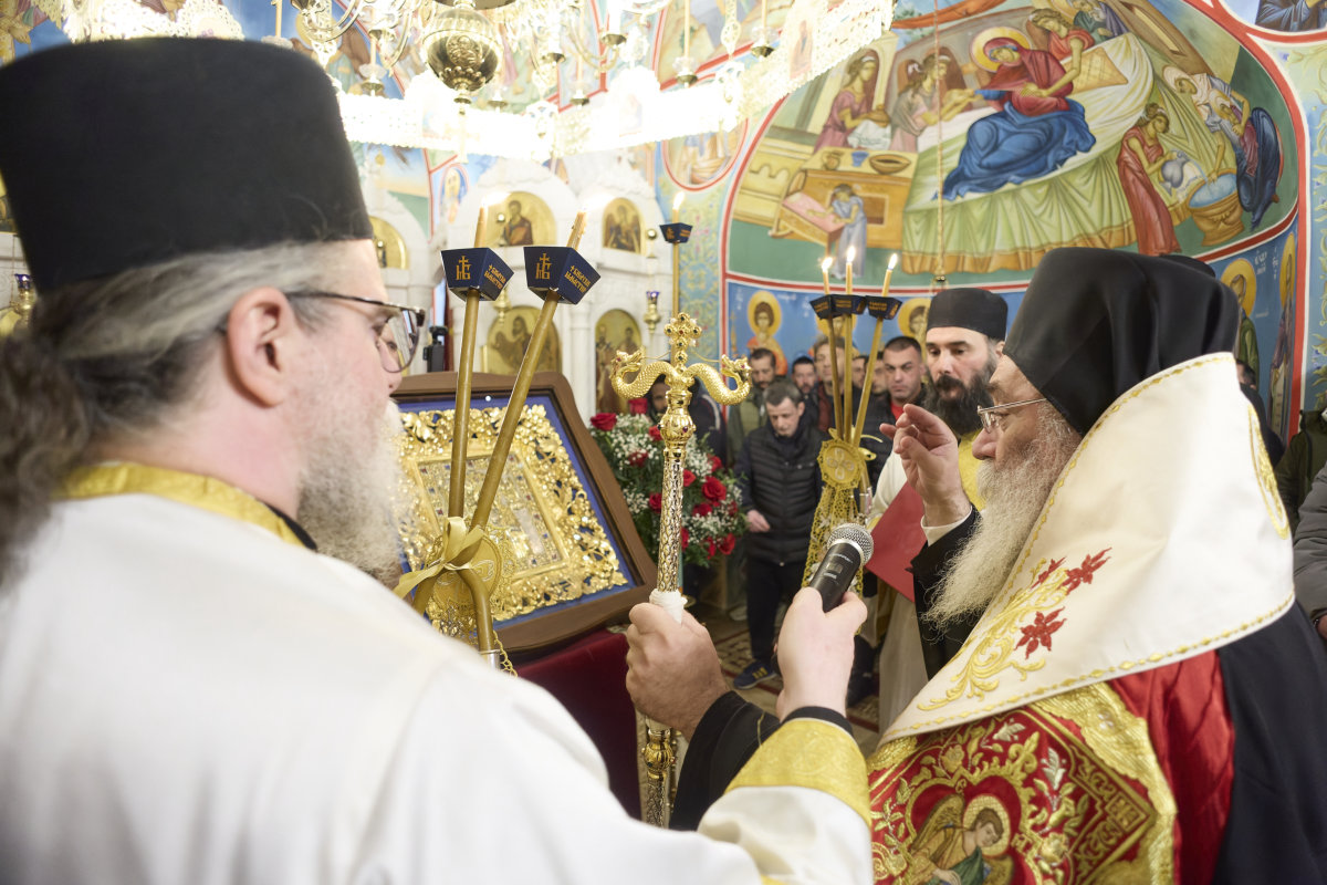 На крајот од Повечерието, владиката дедо Партениј им се обрати на присутните со вдахновено слово за Царицата Мајка, за нејзината неуморна грижа кон секој кој во молитва ја призива, за нејзиниот покров кој не познава граници, и за тоа дека токму среде Великиот пост, кога душата е најчувствителна, Богородица е најблиску.
