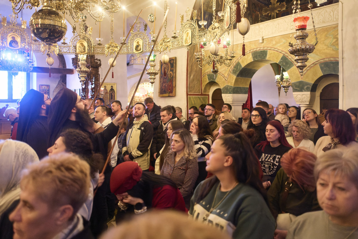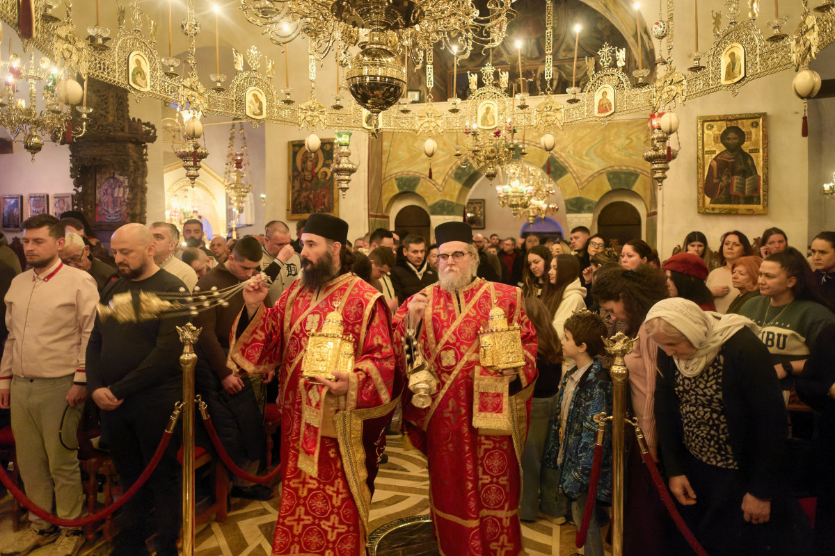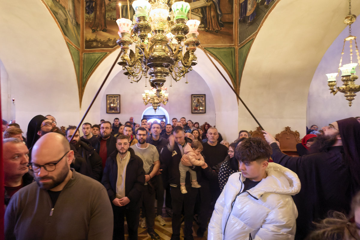 Со оваа единствена по духовна убавина Вечерна богослужба претстоеше нашиот сакан Старец, Неговото преосвештенство епископот Антаниски г. Партениј, чијшто глас, навикнат да се моли повеќе одошто да зборува, ги патеводеше душите кон она место каде што човекот застанува пред Бога со празни раце, без оправдувања, без маски, без ништо друго, освен со својата жед за обновување. На крајот од Вечерната, Старецот го означи почетокот на великопосното богослужение со древната и умилна молитва на свети Ефрем Сирин – таа молитва која, како никоја друга, го разоткрива она најсуштинското во човечкото срце: „Господи и Владико на животот мој, дух на леност, безволност, властољубие и празнословие не давај ми. Дух, пак, на целомудрие, смиреномудрие, трпение и љубов дарувај ми, на Твојот слуга.“ Со земните поклони и со молитвите за благослов на почетокот на постот, нешто се промени во воздухот на храмот и уште повеќе – во срцата на верните. Како да падна превезот меѓу празничното и подвижничкото, и сите почувствуваа дека стапнуваат на друга почва – света почва, построга, но и понежна, зашто Великиот пост не е казна, туку лекување; не е оптоварување, туку ослободување.