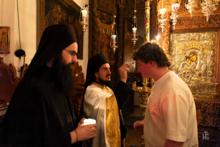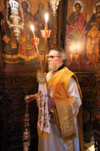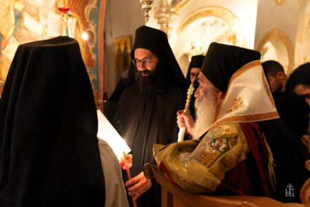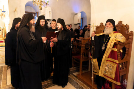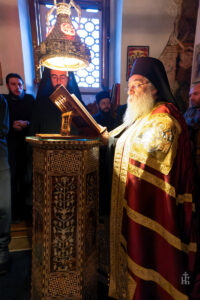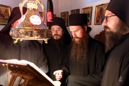 Денешниот празник за Бигорската Обител има уште едно длабоко духовно значење. Имено денеска навршуваат пет години од архиерејската хиротонија на нашиот сакан Старец, Епископот г. Партениј. Со благодарност кон дародавецот Бог си спомнуваме за изминатите пет години апостолско служење, тивката и неуморна грижа за монасите и монахињите, за народот Божји, за сите оние кои Го бараат Бога во нашите светињи. Пет архиерејски лета исполнети со молитва, поука, утеха и служење во духот на светите апостоли; пет години во кои тој како грижлив духовен отец продолжи да ги носи нашите немоќи, да ги прегрнува нашите рани, да нѐ води со благодатната тишина на Евангелието и со силата на Духот.