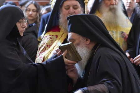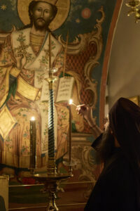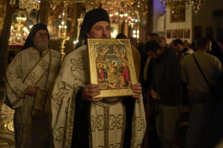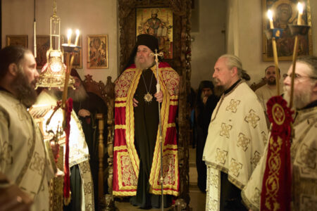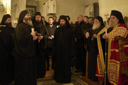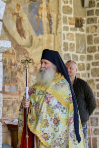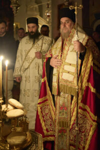 Празничната убавина во чест на овој Христов војвода започна вчеравечер во Бигорската свештена обител со повеќечасовно бдение, исполнето со молитви, топлина и умиление. На наша голема чест, на бдението претстоеше Неговото високопреосвештенство, митрополитот на Имврос и Тенедос г. Кирил, архиереј на Вселенската Патријаршија, кој пристигна кај нас во пријателска и поклоничка посета, придружен од група верници – свои духовни чеда. Неговото присуство, смирено и весело во Духот, внесе особена свежина меѓу верниците.