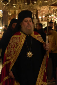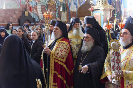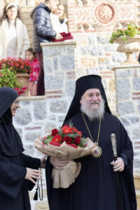 На крајот од богослужбата, нашиот Старец, г. Партениј, изрази срдечна благодарност до митрополитот г. Кирил за неговата љубов, за честа што нѐ удостои со својата посета и за молитвеното сослужение. Од своја страна, митрополитот ги упати кон Старецот и кон сите верници искрените поздрави и благослови од Неговата Сесветост, Вселенскиот Патријарх г. г. Вартоломеј, и изговори вдахновено слово за достоинството и светлината на денешниот празник на свети Георгиј.