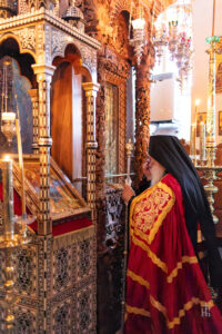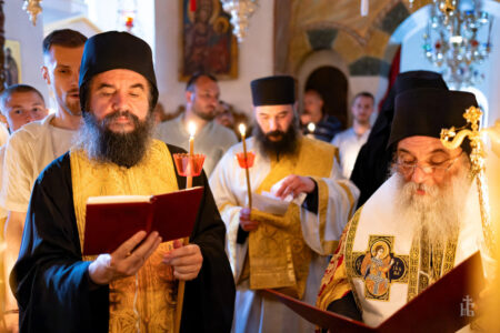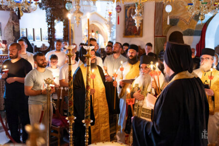 Во светлината на ова ветување, во созерцателната тишина што ги обвива деновите пред светата Педесетница, кога Црквата се подготвува да ја прими полнотата на Светиот Дух, свештената Бигорска обител, верна на диханието на православното предание, со ревност и со радост го отслужи целиот дневен богослужбен круг на задушницата.