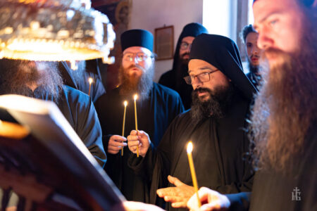 Вчеравечер, собрани околу нашиот Старец, Епископот Антаниски г. Партениј, по заупокоената Вечерна богослужба, отслуживме парастос – молитвен израз на љубовта што продолжува да постои дури и кога зборовите веќе замолкнале. Со трепет во душата си спомнавме за сите наши упокоени отци, браќа и сестри, дедовци и прадедовци, роднини и пријатели – познати и непознати, блиски и далечни, за сите чии имиња се впишани во вечната меморија на Црквата.