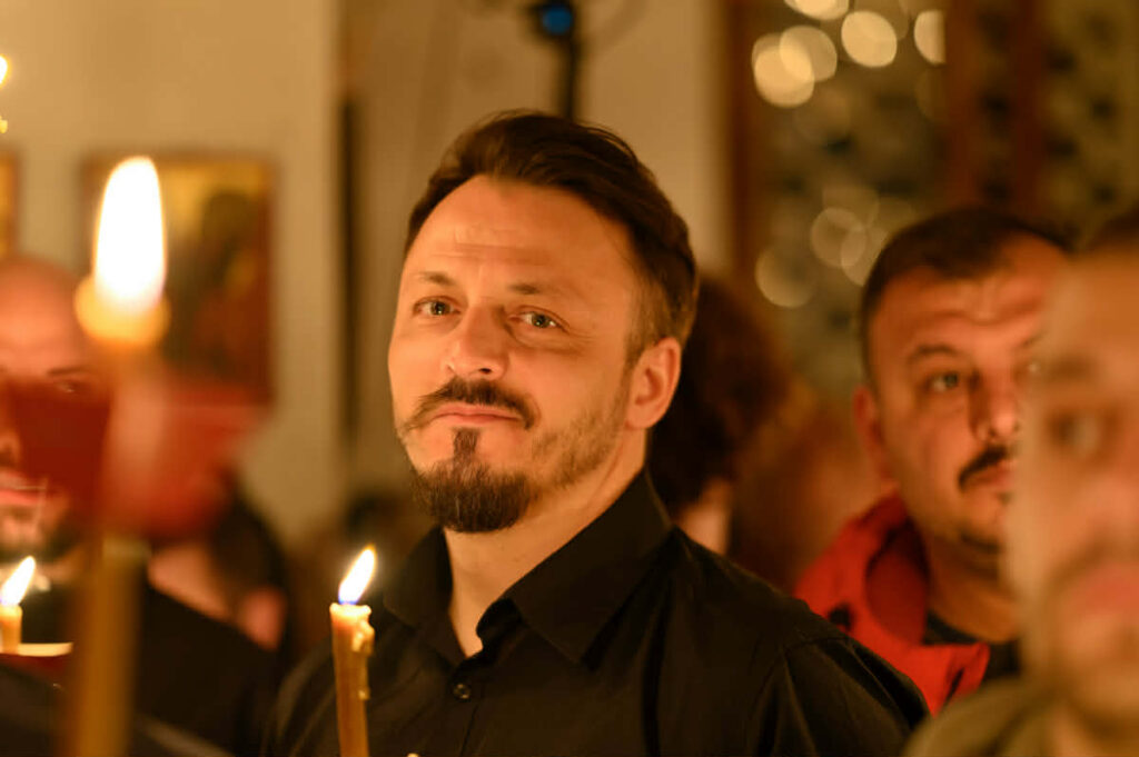 Едно такво осветлено срце беше и на пејачот Даниел Кајмакоски, на кого оваа година во Бигорски манастир му била посебно убава, бидејќи го отворил срцето кон Бога. Тој целата Страсна Седмица ја помина во Бигорски, земајќи молитвено учество во сите богослужби.