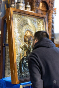 По свечениот пречек на иконата, Старецот се обрати со кратко обраќање, исполнето со љубов и благодарност кон Пренепорочната Дева: