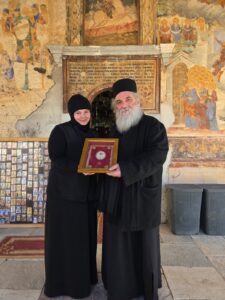 Овој чин е плод на искрената духовна љубов и почит на јеромонахот Стефан Симион од православната Црква на Романија, игумен на манастирот на светиот пророк Илија во Италија, регионот Лацио, кон нашиот возљубен старец, епископот Антаниски г. Партениј. Препознавајќи во него силен континуитет на светоотечкото предание, игуменот о. Стефан одлучи оваа реликвија да ја испрати токму во нашиот манастир, доверувајќи го нејзиното патување во рацете на искушеничката Луминица, кој е член на сестринството од Рајчица.